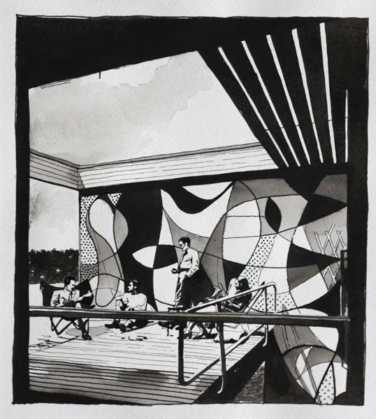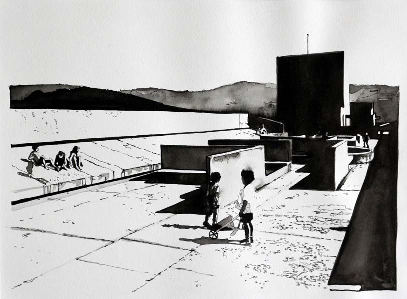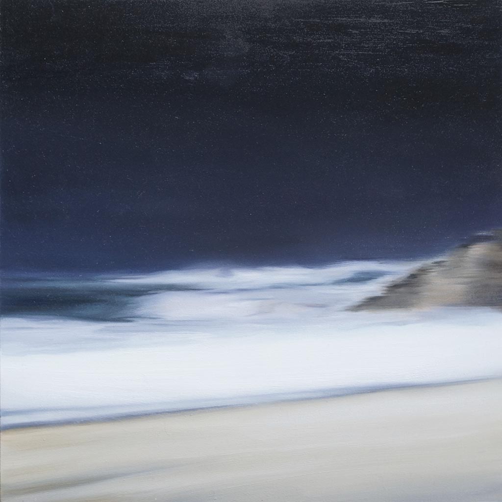 „Oversea“ bedeutet einen Ort, getrennt durch Meer und Zeit, der einen anderen Standpunkt zeigt in Raum oder Haltung. Es ist ein Zustand in der Schwebe, eine Utopie, eine idealisierte Sehnsucht - darunter nur Wasser.