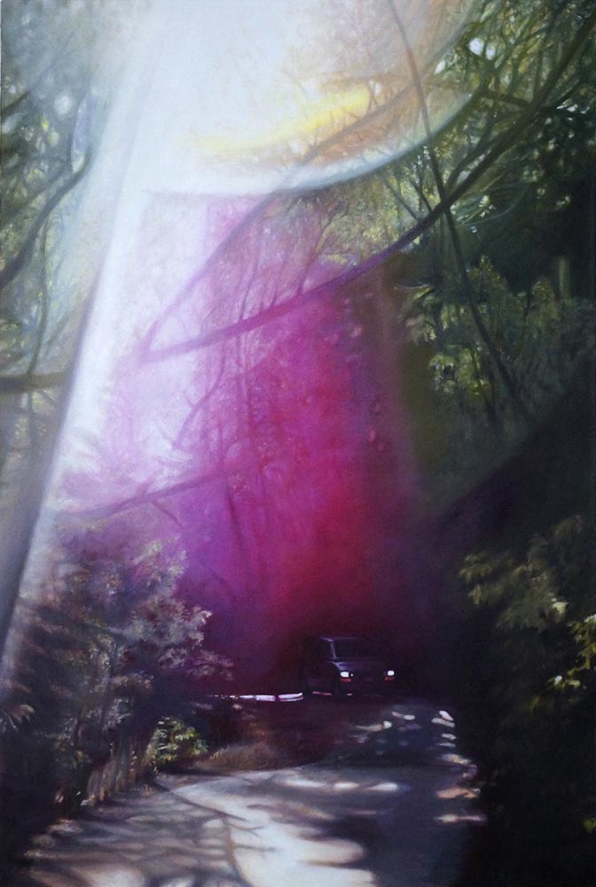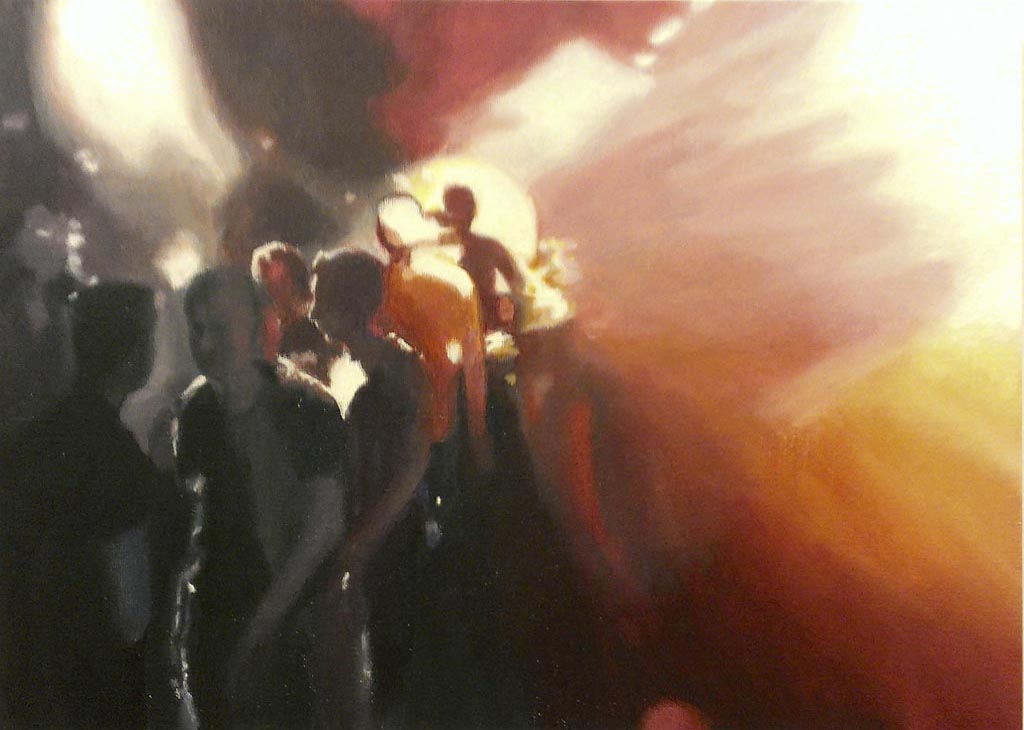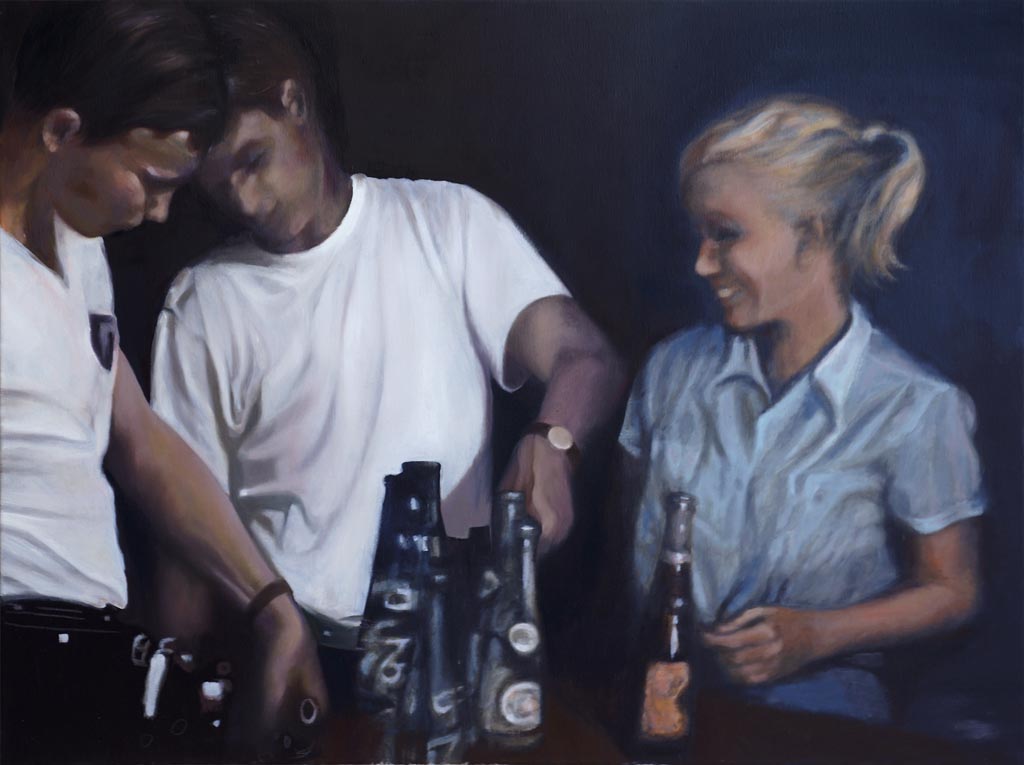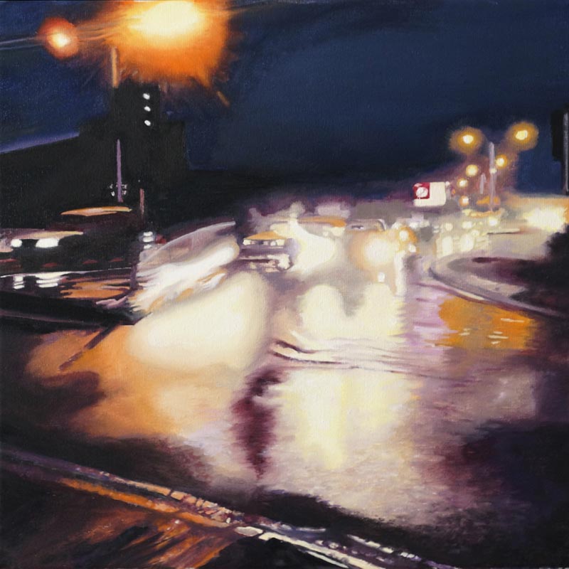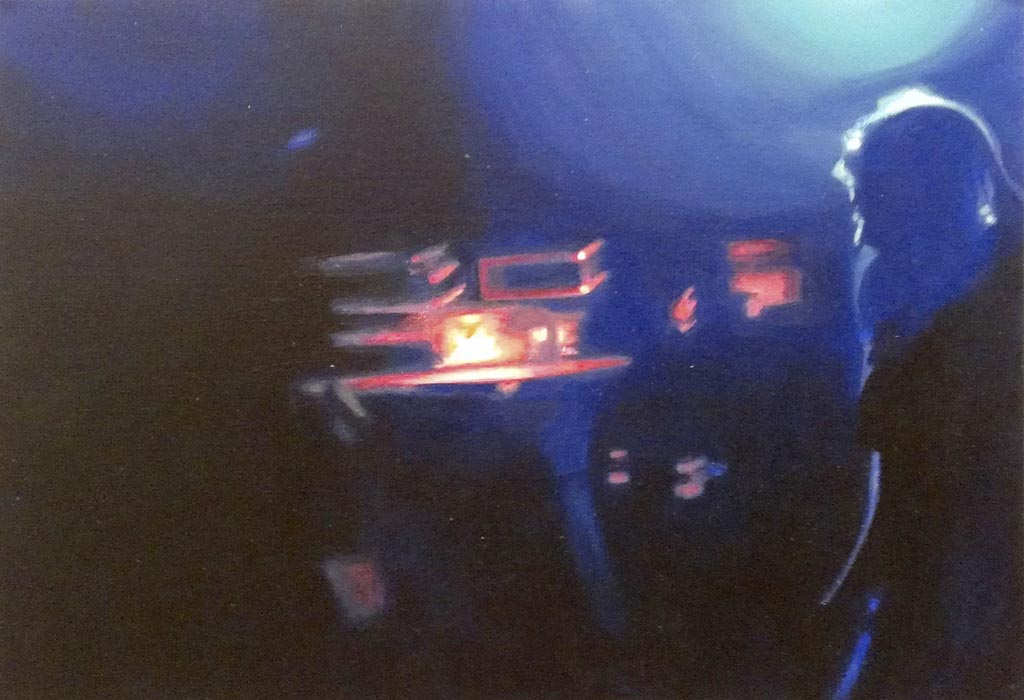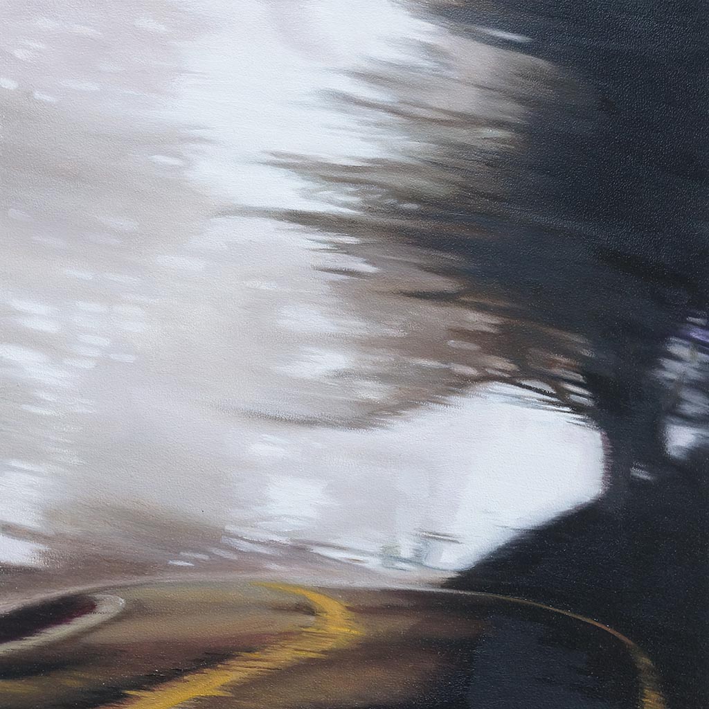 Die in Öl und Acryl gemalten Motive variieren in der Tiefe des Detailierungsgrades zwischen präzisen, statischen Stilleben und dynamischer, fl üchtiger Unschärfe die Ihre Wirkung aus dem Spiel von Licht, Schatten und Bewegung generiert. Die fotorealistische Anmutung der Bilder verändert sich dabei mit dem Standpunkt des Betrachters und entwickelt eine interessante Spannung zu der aus der Nähe wahrnehmbaren Abstraktion im Strich.