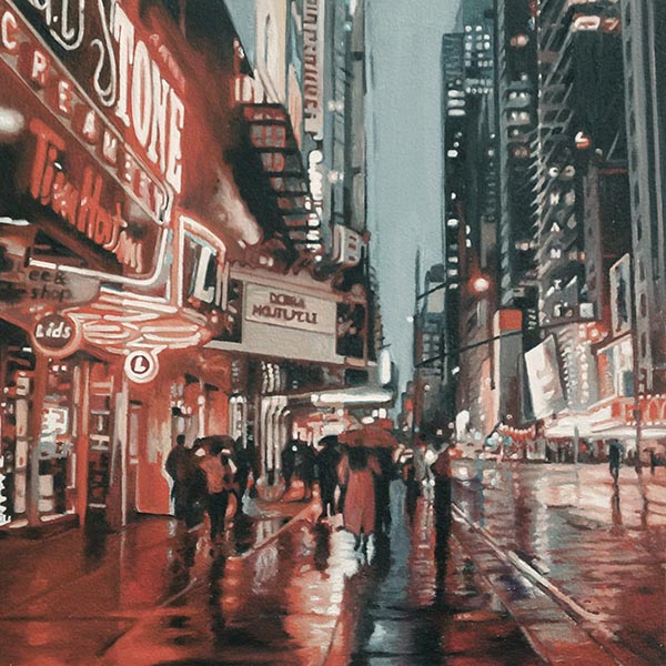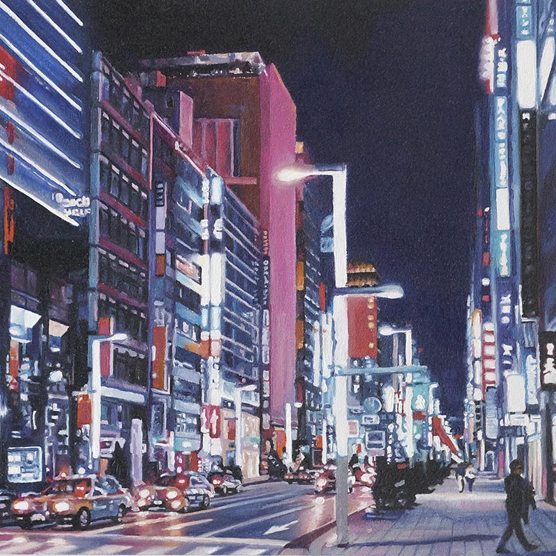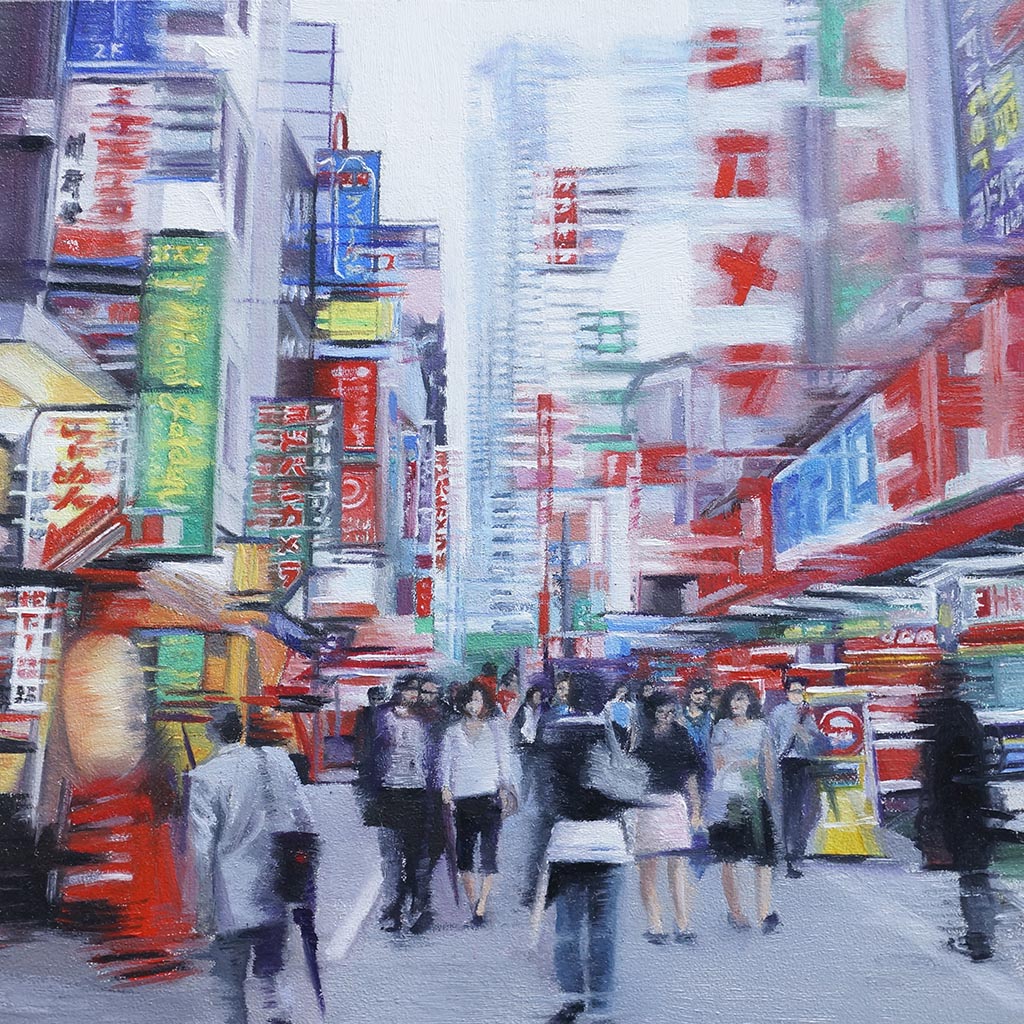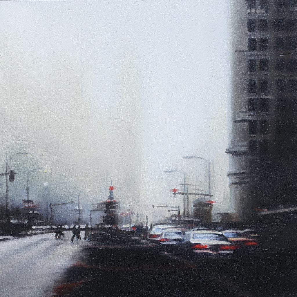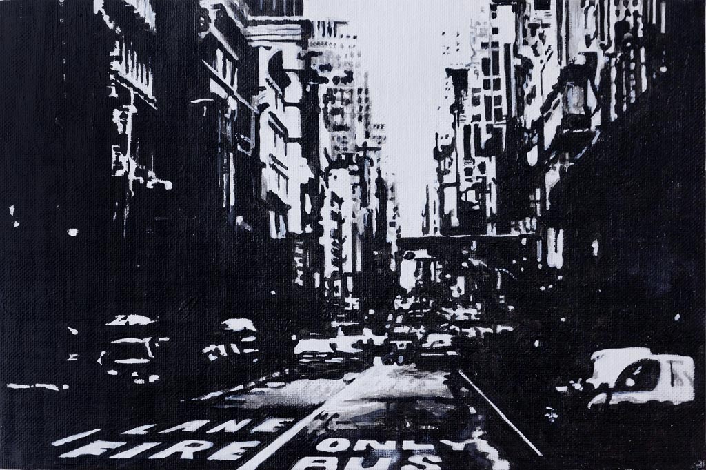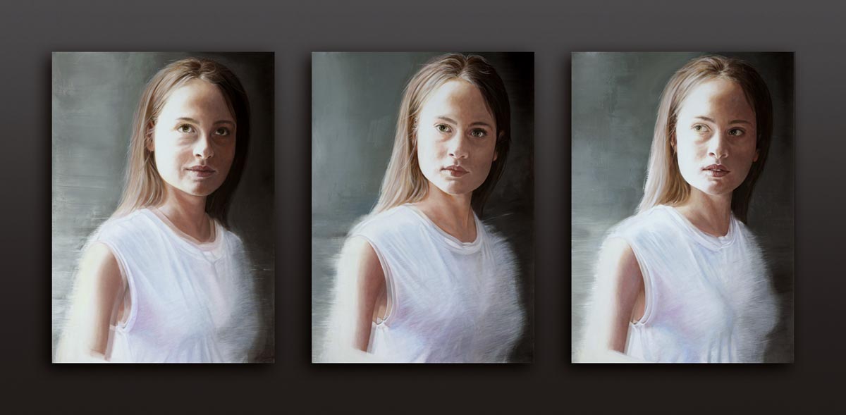 Die in Öl und Acryl gemalten Motive variieren in der Tiefe des Detailierungsgrades zwischen präzisen, statischen Stilleben und dynamischer, fl üchtiger Unschärfe die Ihre Wirkung aus dem Spiel von Licht, Schatten und Bewegung generiert. Die fotorealistische Anmutung der Bilder verändert sich dabei mit dem Standpunkt des Betrachters und entwickelt eine interessante Spannung zu der aus der Nähe wahrnehmbaren Abstraktion im Strich.